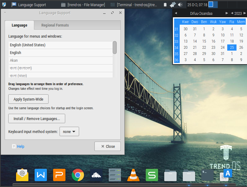 Trend OS supports multiple desktop environments, including GNOME, KDE, Xfce, and more. During installation, you can choose your preferred desktop environment or switch between them later.
